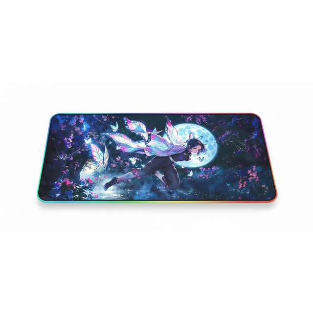 Élevez votre setup à un niveau de maîtrise supérieur avec ce tapis de souris d'exception. Alliant l'esthétique envoûtante de Demon Slayer à une technologie de glisse de pointe, il arbore une illustration vibrante de la Hashira de l'Insecte sous une pleine lune magnétique. Les contrastes néons et les bordures LED synchronisées apportent une dimension immersive inédite, transformant chaque session de jeu en une quête de précision absolue.