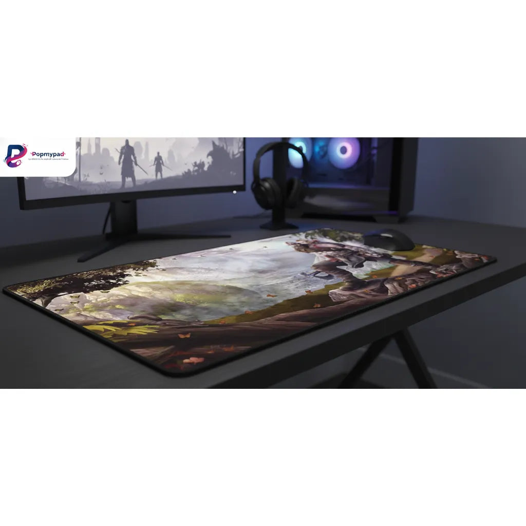Transformez votre espace de jeu en un champ de bataille légendaire. Ce tapis de souris arbore une illustration épique de Kratos et Atreus, apportant une profondeur visuelle et une aura de puissance à votre setup. Conçu pour les guerriers de l'esport, il allie une esthétique contemplative à une réactivité technique indispensable pour vos victoires les plus exigeantes.