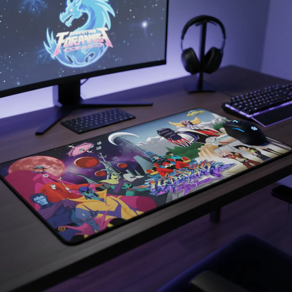 Imaginez la puissance du Grand Stratéguerre s'étendant sous vos mains. Ce tapis de souris est une pièce de collection vibrante qui oppose l'ombre pourpre des forces de Vega à l'éclat héroïque de Goldorak, créant une atmosphère de nostalgie épique sur votre bureau. C'est une fenêtre ouverte sur vos souvenirs d'enfance, conçue pour sublimer l'esthétique de votre setup gaming avec une intensité visuelle rare.