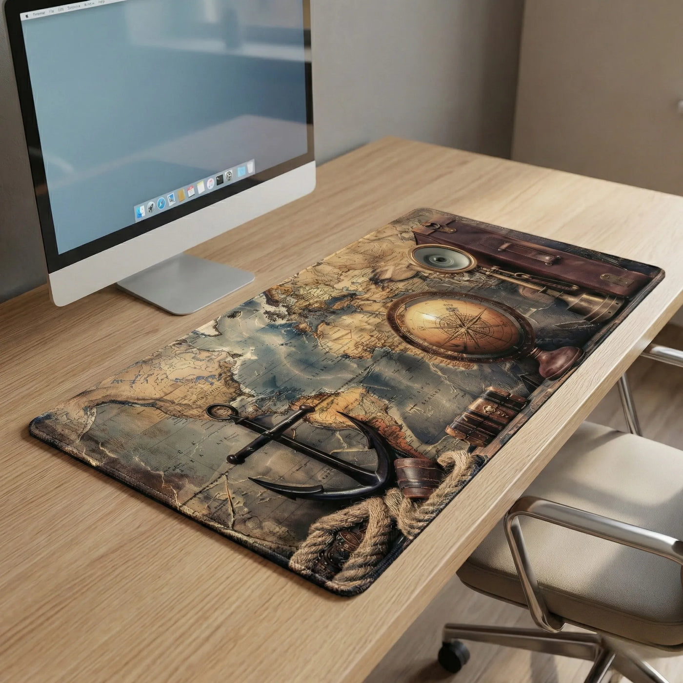 Transformez votre espace de travail en un port d'attache légendaire. Ce tapis de souris XXL déploie sous vos yeux une carte du monde aux teintes de parchemin ancien, ponctuée d'ancres majestueuses et d'instruments de navigation d'un autre temps. Plus qu'un simple accessoire, c'est une invitation au voyage qui apporte une profondeur artistique et une élégance intemporelle à votre setup gaming ou professionnel.