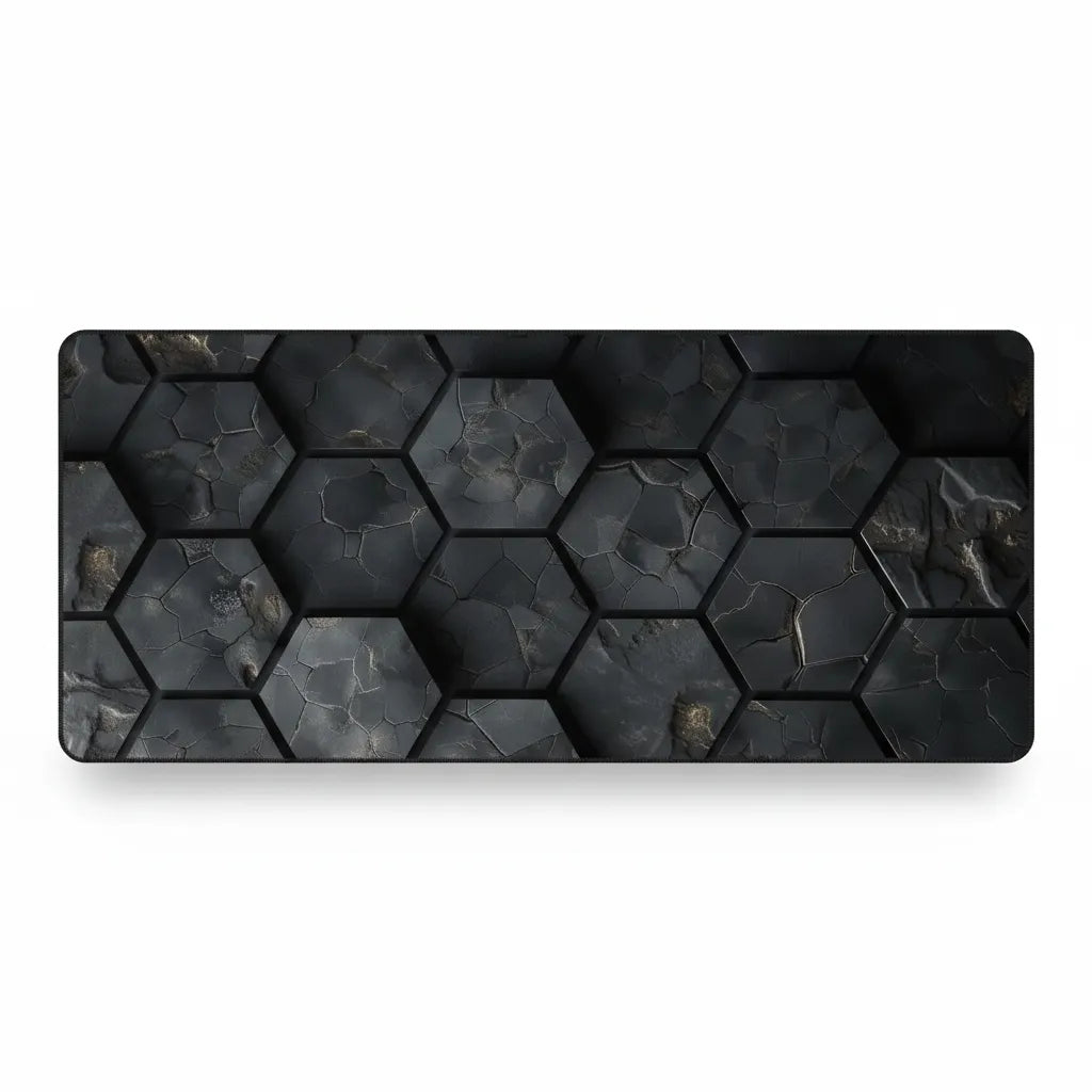 Invitez la puissance des éléments au cœur de votre espace de travail avec une pièce qui transcende l'accessoire de bureau. Ce tapis de souris arbore un motif hexagonal saisissant, évoquant des dalles de pierre sombre traversées par des veines d'or liquide. C'est une véritable immersion visuelle qui apporte une atmosphère sophistiquée et une texture riche à votre setup, transformant chaque mouvement de main en une expérience sensorielle.