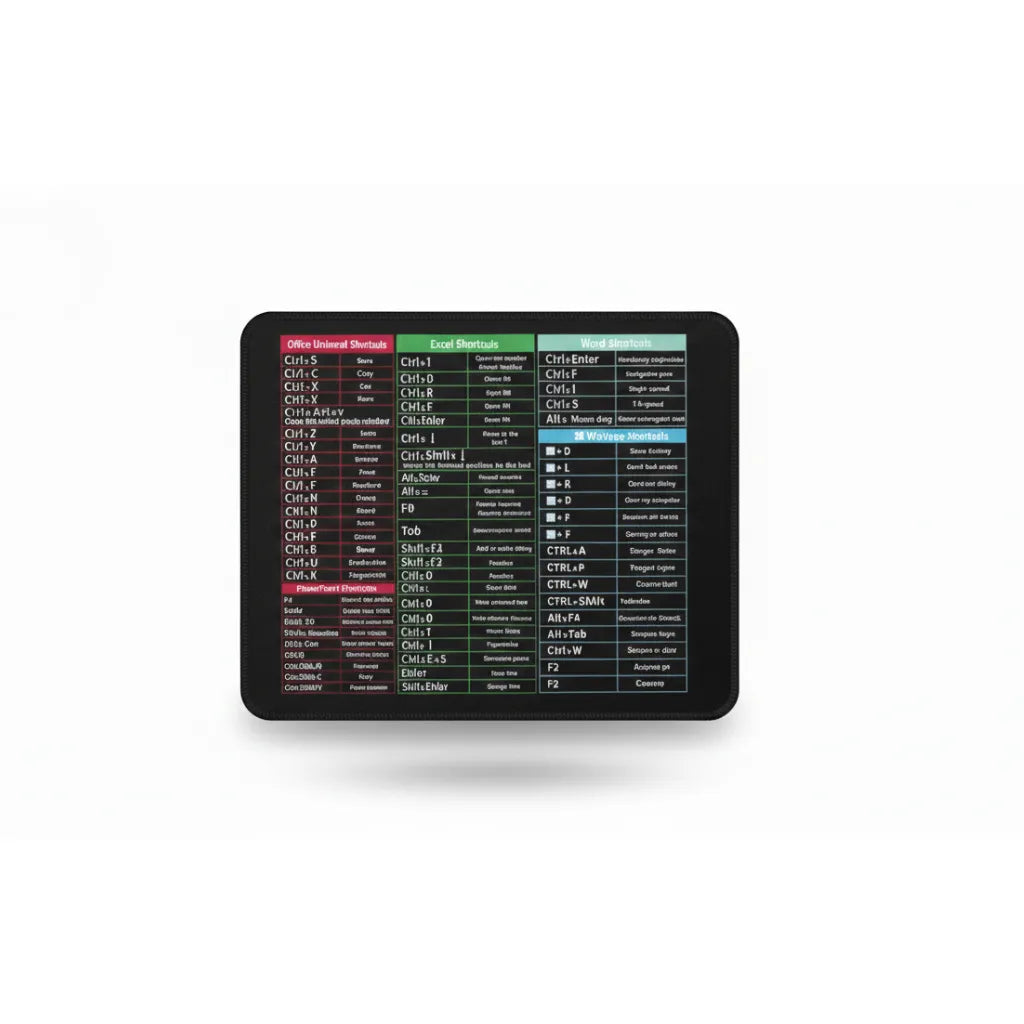 Transformez votre poste de travail en un sanctuaire d'efficacité avec ce tapis de souris au design unique. En affichant avec clarté les raccourcis essentiels d'Excel, Word et Windows, il élimine les hésitations et apporte une harmonie visuelle immédiate à votre bureau. C'est l'accessoire indispensable pour ceux qui recherchent un environnement zen et une maîtrise totale de leurs outils numériques.
