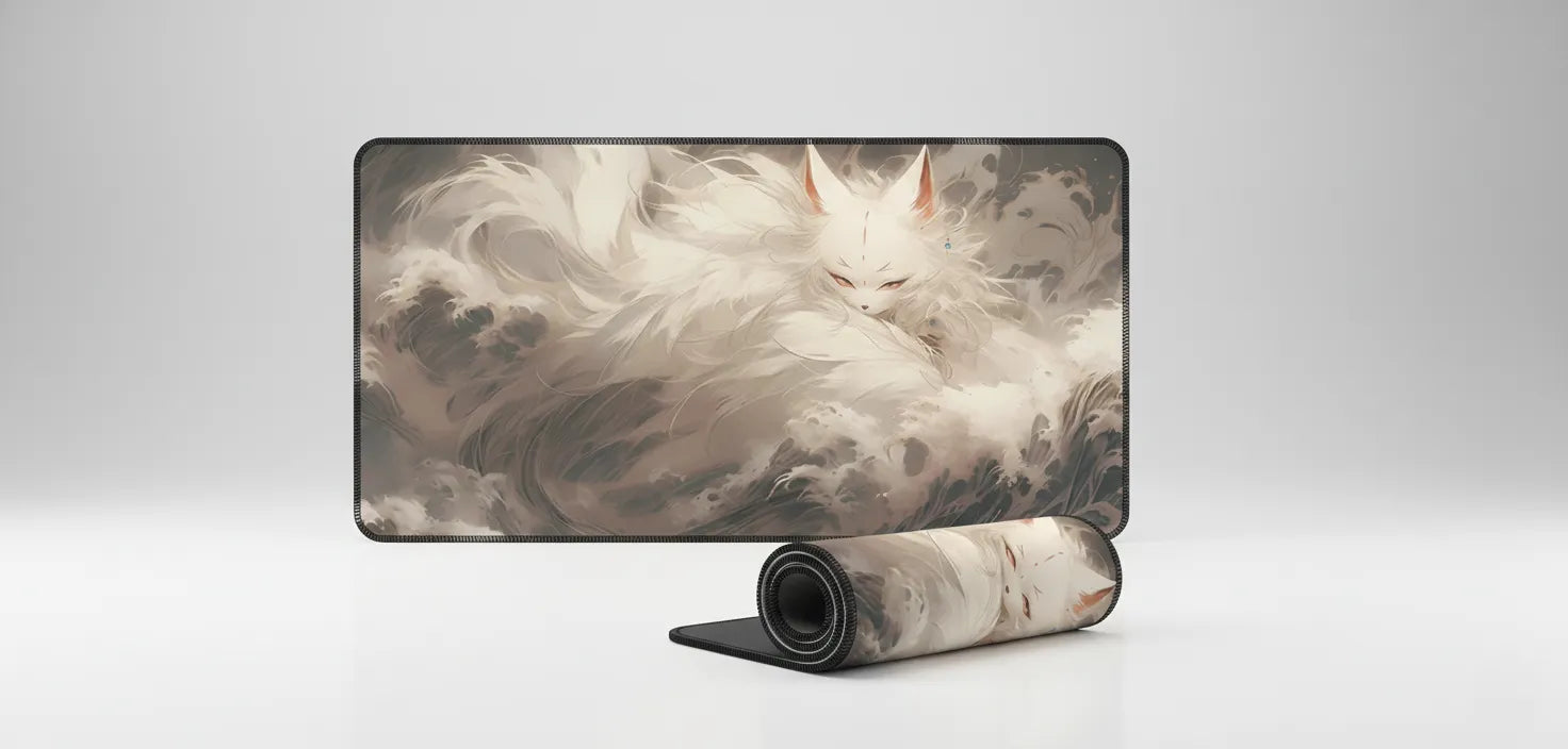 Tapis de Souris Gaming & Bureau — Renard Kitsune Zen — Design Japonais Épuré