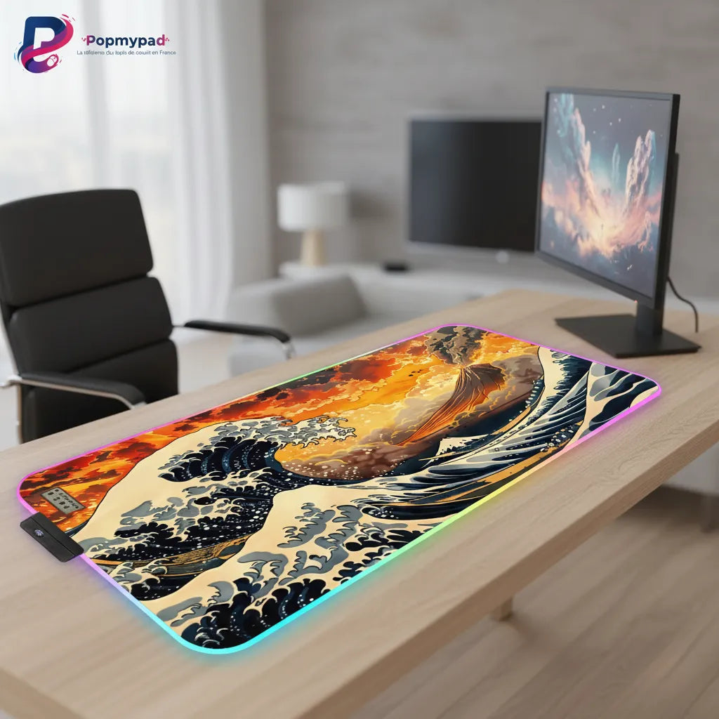 Tapis de souris RGB "Vague de Feu" – Édition Japon Traditionnel & Volcan