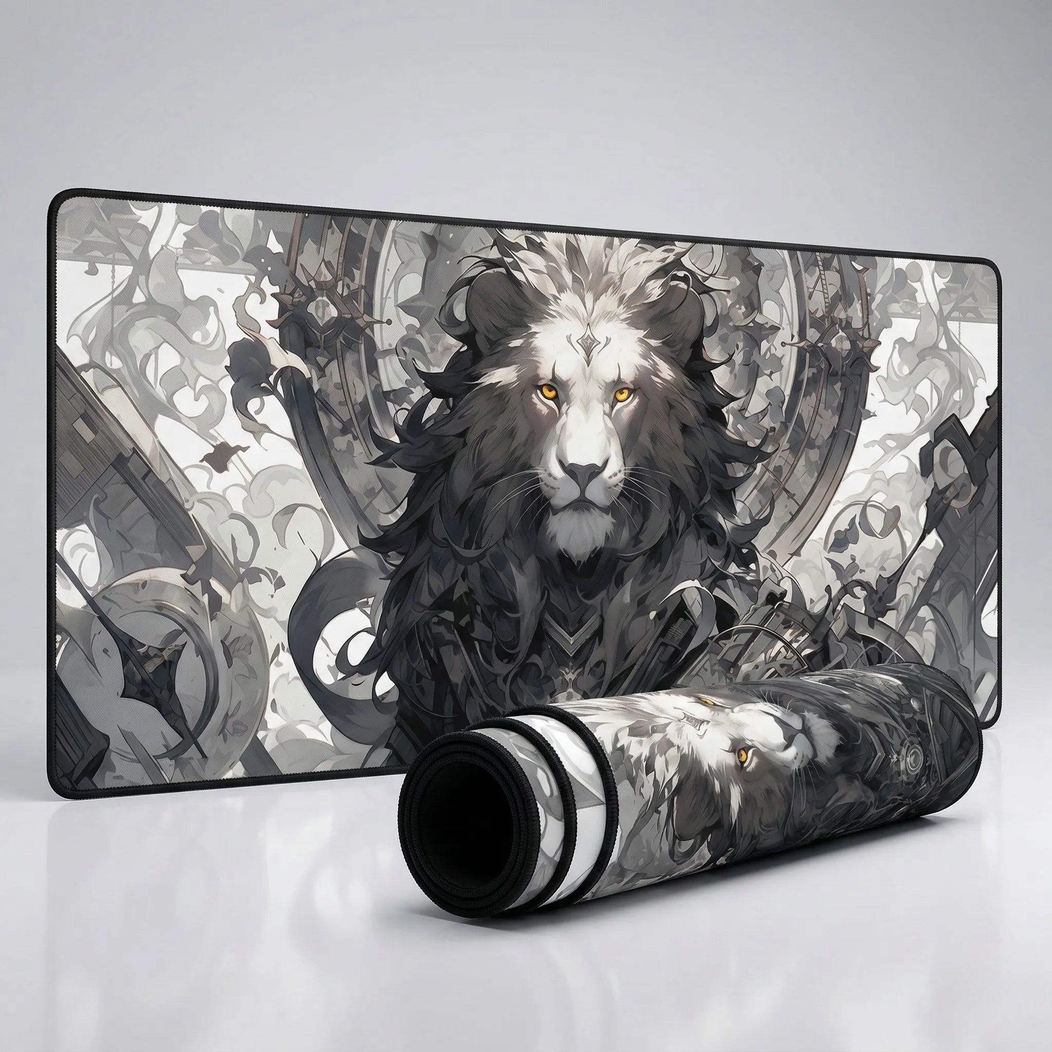Plongez dans un univers où la force sauvage de la nature rencontre l'élégance complexe du steampunk. Ce tapis de souris transforme votre setup en une véritable galerie d'art, imposant une atmosphère de sérénité et de puissance grâce à son illustration magistrale d'un lion mécanique émergeant d'une brume onirique. C'est l'accessoire ultime pour ceux qui souhaitent allier une esthétique de collection à un confort de jeu absolu.